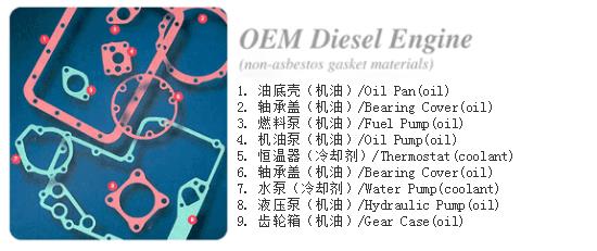 在OEM配套的柴油機市場中,正確選擇墊片材料需要對材料的設(shè)計性能和應(yīng)用的部件結(jié)構(gòu)有充分的了解。最重要的是材料的性能一定要滿足甚至超過柴油發(fā)動機的應(yīng)用要求。因特費斯墊片公司在為用戶選擇和推薦材料產(chǎn)品時,我們不僅對選擇的部件作全面詳盡的分析,并且對選擇的材料進行仿真性的測試,為保證材料產(chǎn)品應(yīng)用的可靠性。